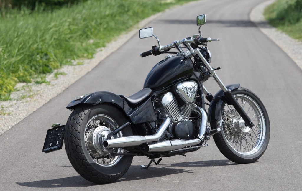 And this is a circa 2002 Honda Shadow (pic from sourcetopcar.blogspot.com) with some kind of butterfly decal.