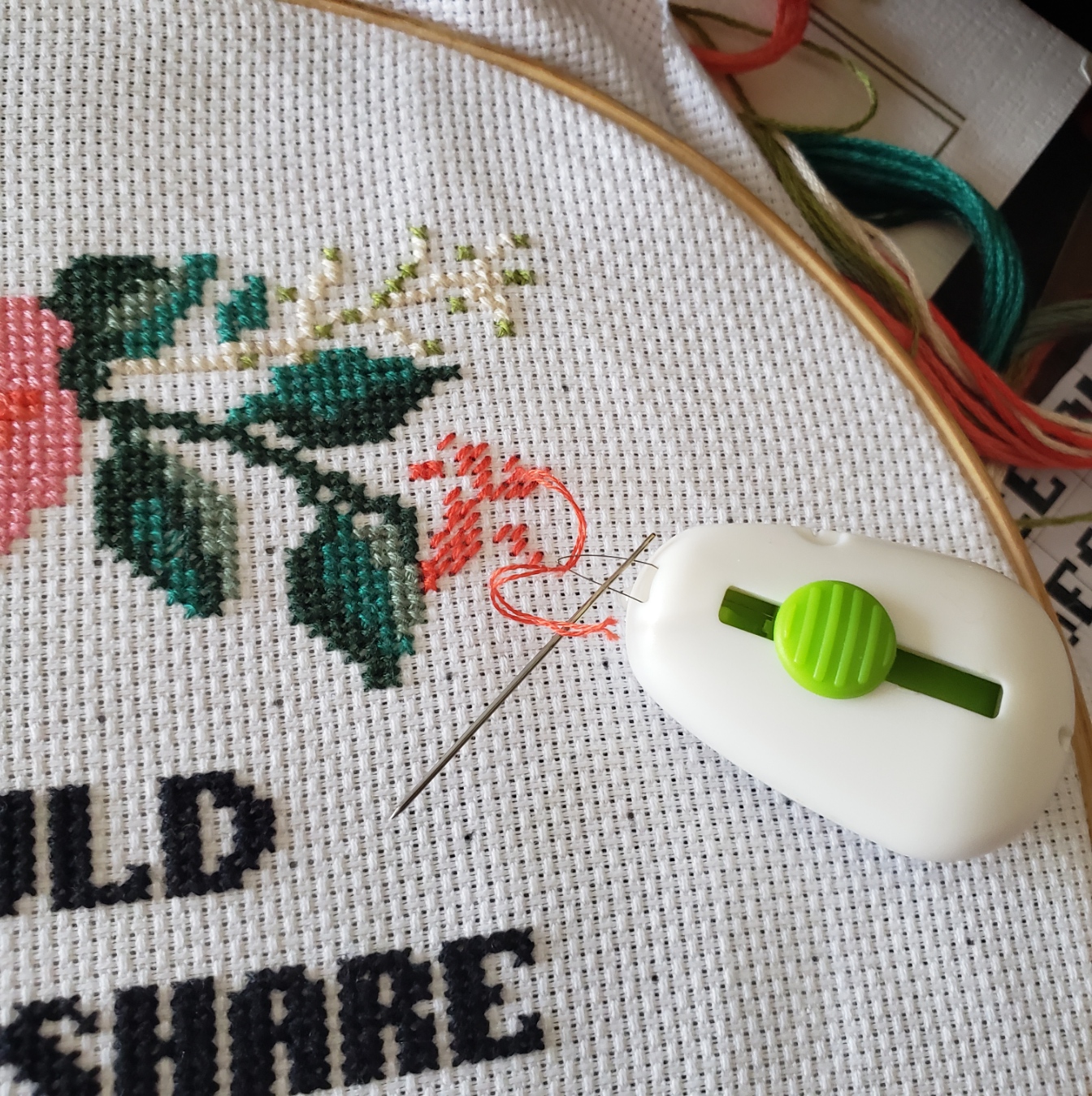 Cross-stitching a pattern from White Raven Patterns for a surprise.